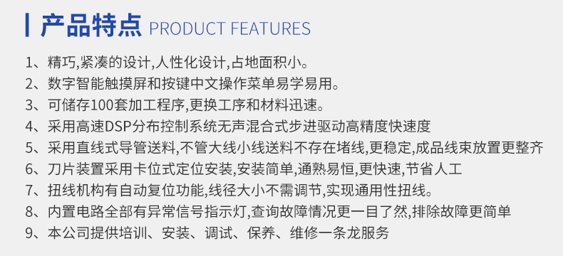 7.扭線機(jī)構(gòu)有自動(dòng)復(fù)位功能,線徑大小不需調(diào)節(jié),實(shí)現(xiàn)通用性扭線。