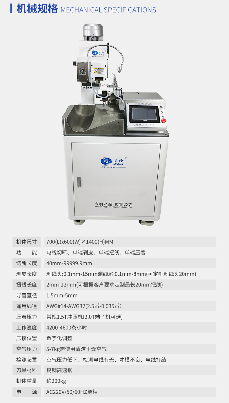 LL-551/551+T(帶扭線)全數(shù)字智能單端壓著機(jī)   產(chǎn)品說明:   1.精巧,緊湊的設(shè)計(jì),極佳人性化設(shè)計(jì),占地面積小。   2.數(shù)字智能觸摸屏和按鍵中文操作菜單易學(xué)易用。   3.可儲(chǔ)存100套加工程序,更換工序和材料...