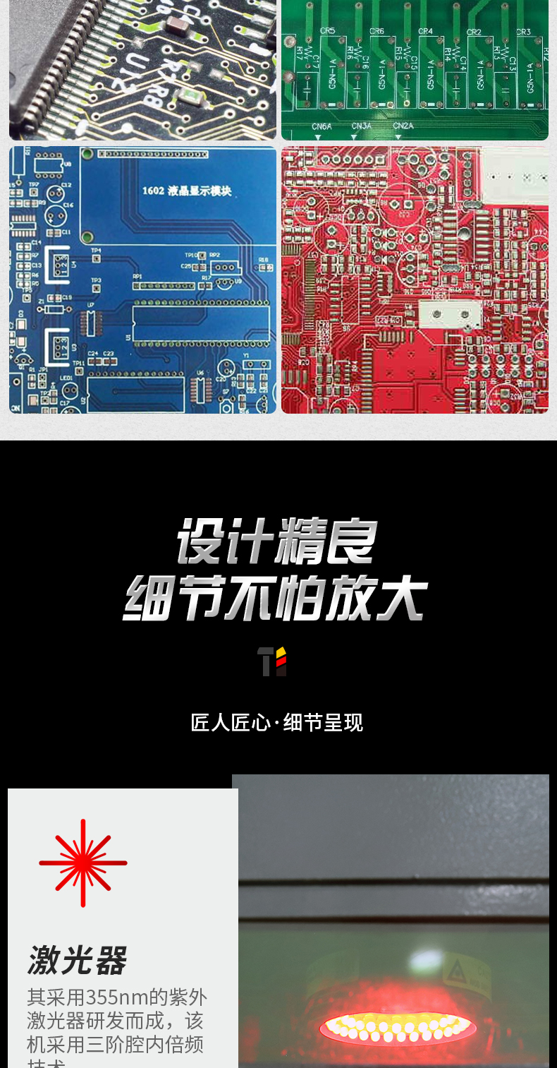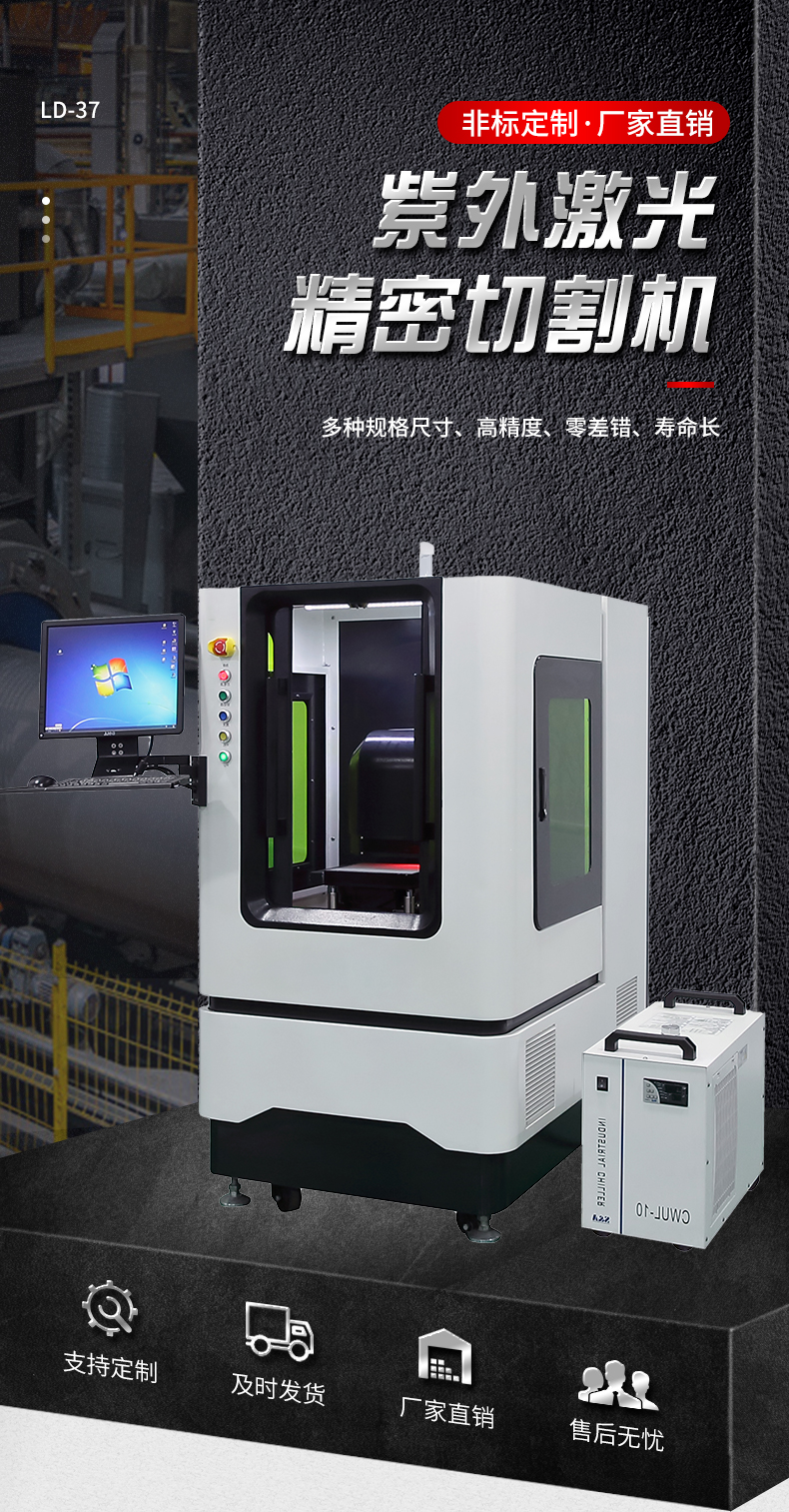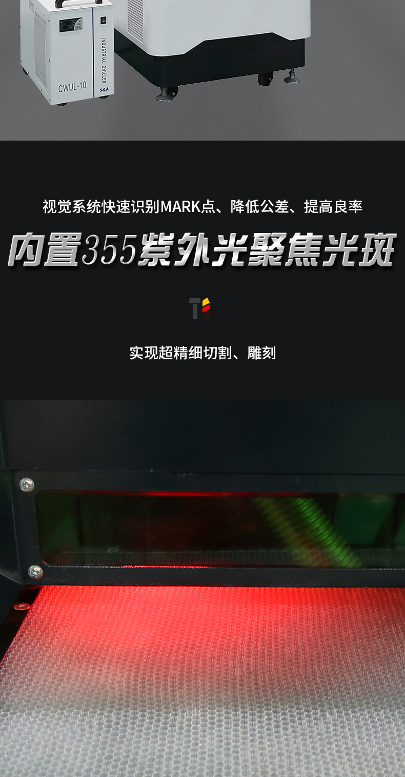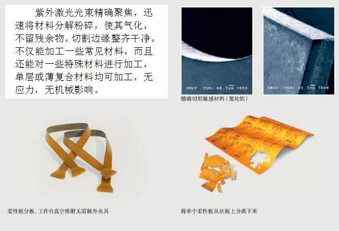 采用UV紫外激光作為工具,冷加工方式,結構緊湊、易安裝、操作簡單,維護方便。幾乎可以加工所有材料,功能強大,精密控制及加工效率極高,是開發(fā)創(chuàng)新產品的好幫手。