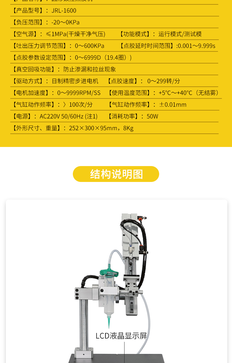 3 采用LCD顯示,點膠參數(shù)便于讀取,具有計數(shù)功能。